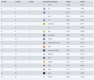 阅读详情TIOBE编程社区指数是一个衡量编程语言受欢迎程度的指标,评判的依据来自世界范围内的工程师、课程、供应商及搜索引擎,今天TIOBE官网公布了2024年6月的编程语言排行榜,IT之家整理如下:Pytho...