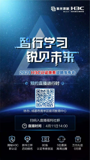 阅读详情由紫光旗下新华三集团承办,成都银河教育中心协办的智行学习,锐见未来-2021 H3C认证体系战略发布会将于 2021年4月11日14:00 进行直播。 直播内容为:锐见数字化未来、智行H3C认证体系...