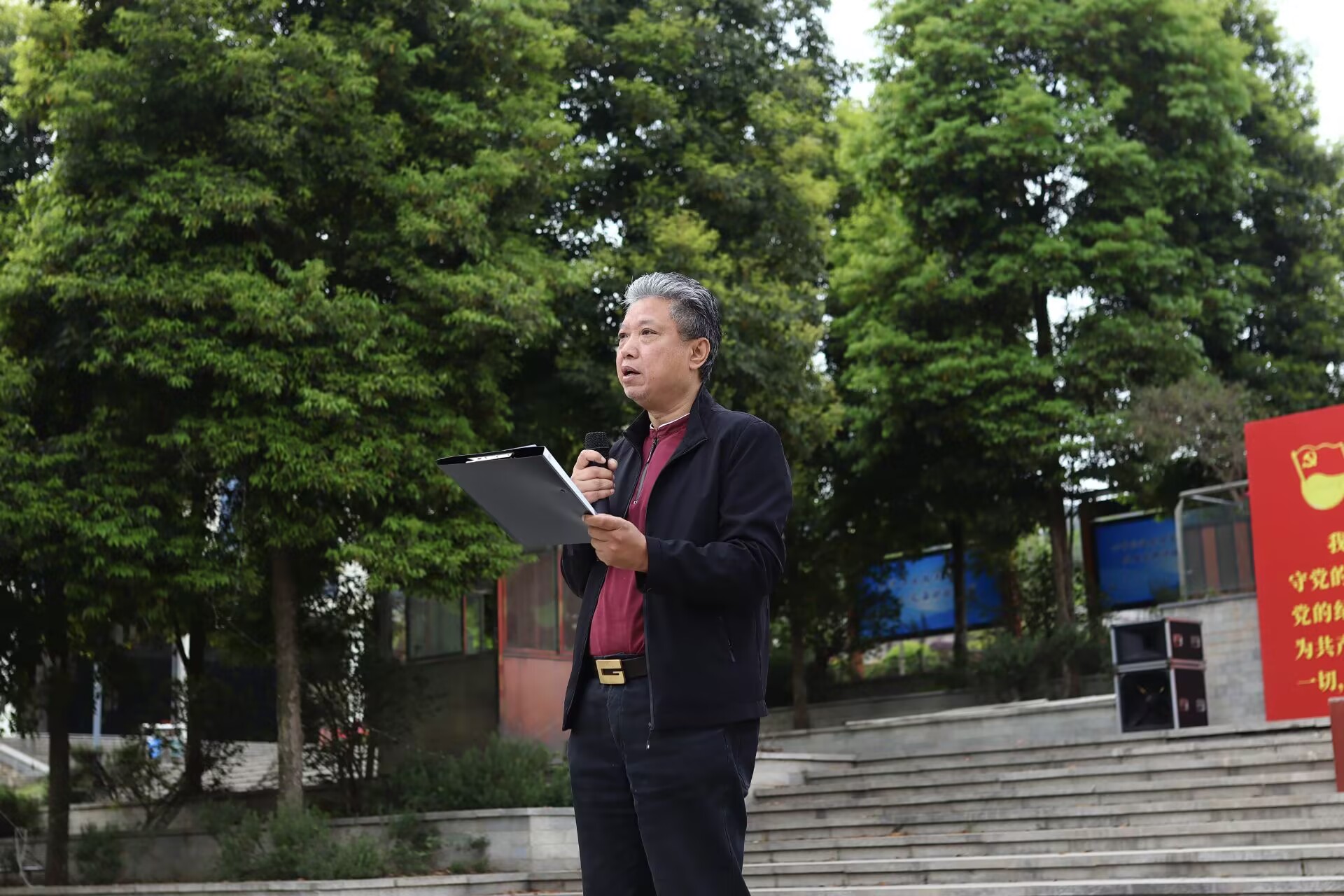随后,田锐副校长发表题为《坚定理想信念,勇担时代使命》的讲话。他开篇强调,升旗仪式既是一堂生动的爱国主义教育课,更是青年叩问初心、砥砺前行的重要契机。站在新的历史起点,新时代青年肩负着民族复兴的使命,既是时代的见证者,更是建设者。如何将个人成长融入国家发展大局,以理想信念引领人生方向,是每位青年需深思的课题。